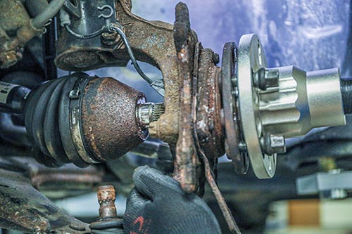 Vetoakselin irroitus pyörän navasta. Kiinnijuuttuneen vetoakselin irroitus hydraulisesti. Sopii 4 ja 5 pulttisille pyörännavoille 90-125 mm reikävälillä.