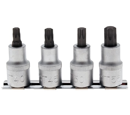 BGS 1/2″ Torx Bits hylsyt on näppärässä kiskossa. Mukana koot: T40-T45-T50-T55.