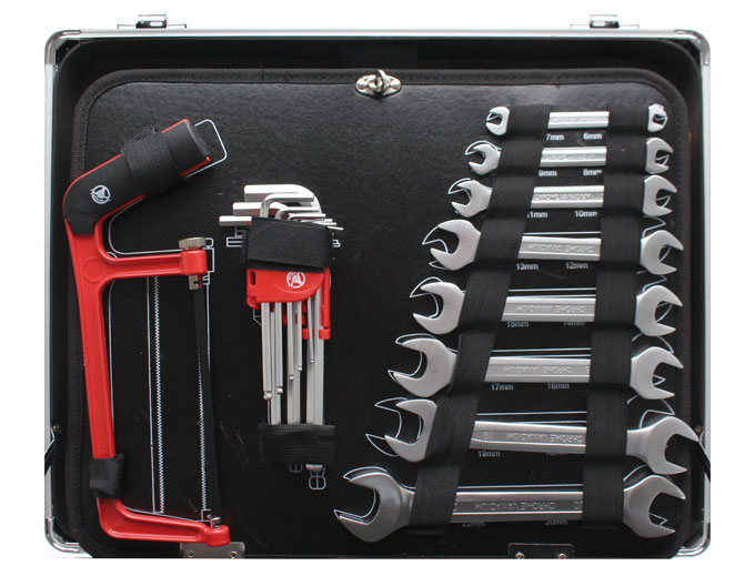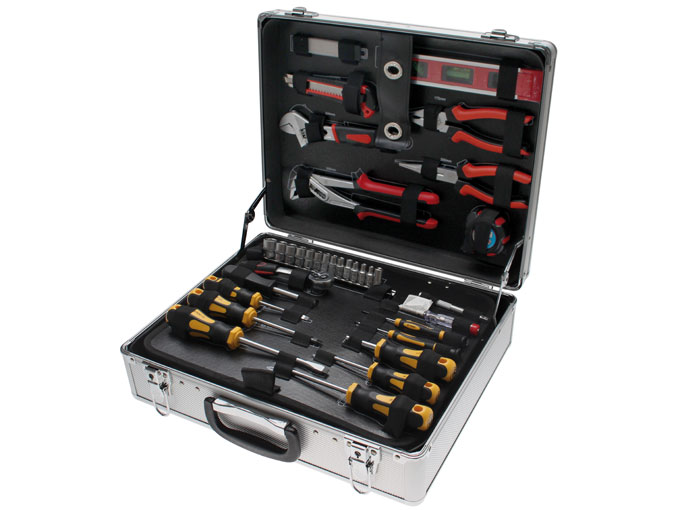 Monipuolinen 129-osainen työkalujen sarja, joka on pakattu upeaan lukittavaan alumiinisalkkuun. Mainio lahja nuorelle tai miksi ei vanhemmallekin, joka tarvitsee päivitystä työkaluihinsa. Salkku kulkee kätevästi mukana, joten enää ei tarvitse murehtia sitä, että oikea työkalu puuttuu tien päällä.