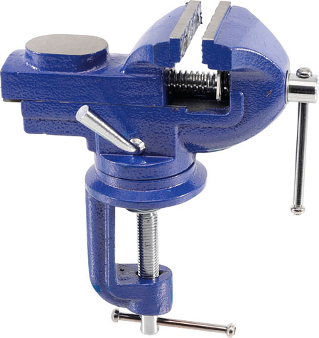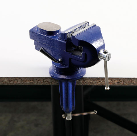 Kraftmann Pöytäruuvipuristin alasimella. Kääntyy täydet 360 astetta. Leukojen leveys 60 mm Voidaan kiinnittää max 45 mm paksuiseen pöytälevyyn.