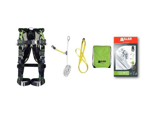 Yksinkertainen ja kätevä varustesarja kattotyöskentelyyn. Sarja sisältää 1 H -valjaan, köyden, köysilukon, silmukan ja säilytyslaukun.
