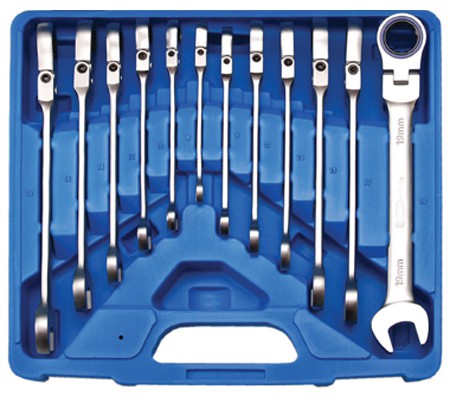 BGS Räikkälenkit 72 hampaiset taittuvalla päällä. 12-os sarja sisältää koot 8-9-10-11-12-13-14-15-16-17-18-19 mm. Kääntyy 180 astetta.