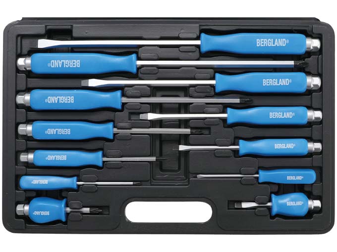 Erittäin jämäkkä ruuvimeisselisarja 12-os Kraftmann-7890. Sopii kovaan vääntöön.