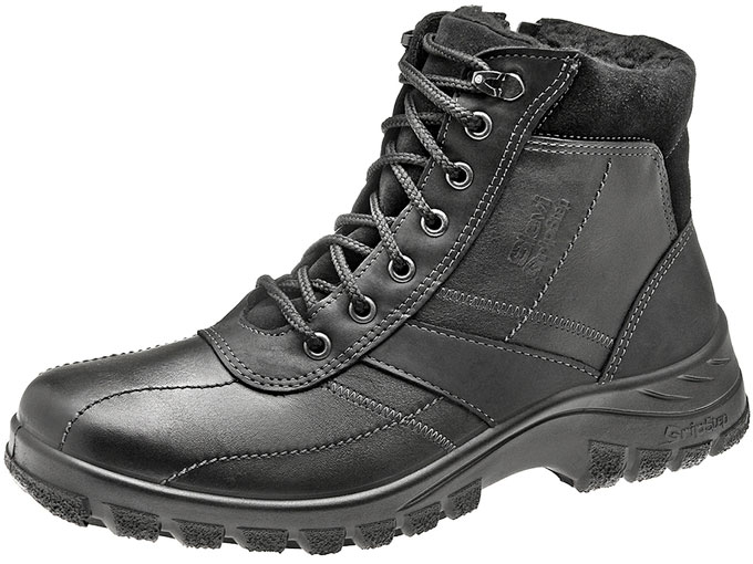 Lämminvuorinen nilkkuri GripStep®-kitkapohjalla. GripStep®-pohjarakenteessa yhdistyvät PU:n ja TR-kumin kitkaominaisuudet pidon maksimoinniksi. Nahkapäällisen harkitut yksityiskohdat on toteutettu nupukilla ja koristetikkauksilla. Varrensuussa haljasnahkaa. Alumiinikalvolla varustettu pohjallinen pitää kylmän jalkineen ulkopuolella ja lämmön sisällä. Nauhat ja vetoketju.