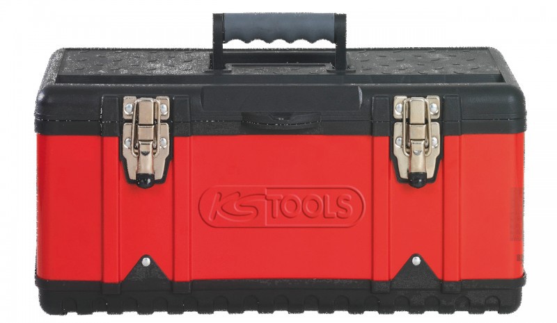 Erittäin vahva ja tyylikäs työkalupakki. Valmistettu iskunkestävästä muovista ja teräslevyistä. Lukittavissa riippulukolla. Siirrettävä lokerikko pientarvikkeille. Kantokahva.